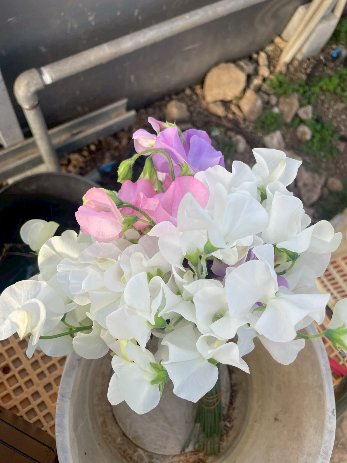 お話の後は、スイートピーの間引き作業と、ツルのピン止め作業を行いました。まだ、わずかな量しかスイートピーは咲いていませんでしたが、スイートピーならではの甘い香りに癒されました。地道な作業でしたが、参加者の皆さんからは自然と笑みがこぼれていました。